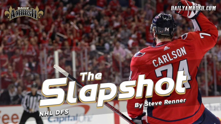 NHL DFS – The Slapshot With two more big slates to go we have the NHL to save us from no NBA slate and a boring NFL game tonight. Actually that NFL game might be alright, but it’s got nothing…...